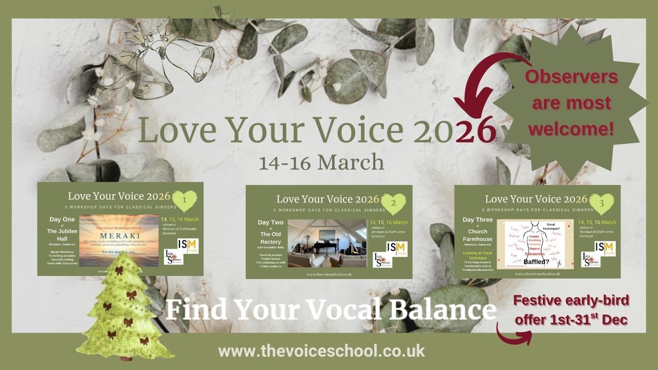 This festive early-bird offer is simply a gentle way to secure your place for all three days well in advance. When you book during December, your place is held immediately, and the cost is then completed in three equal payments across December, January and February. Everything is settled before March, which keeps the planning clear and gives our accompanist, Geraldine, time to prepare fully for Day Two with your chosen music.