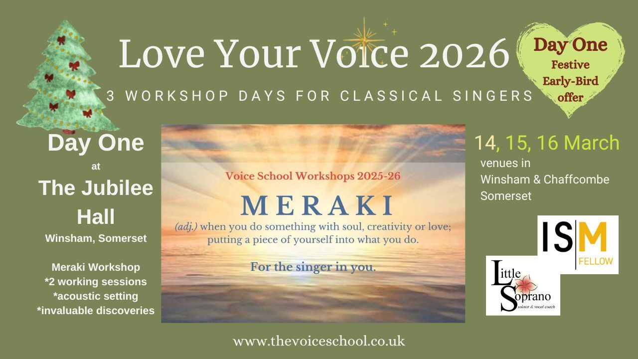 A free-spirited study day/workshop as part of the Love Your Voice 2026 experience, for up to 6 solo singers. It will be a day of our design; we're creating something wonderful. Together.