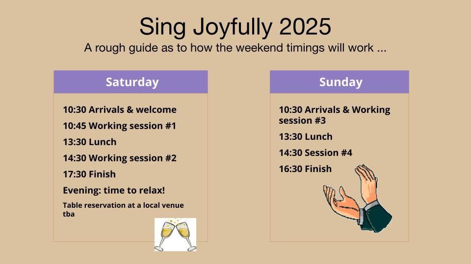 A small number of observer places are also available. Observers are always included in the flow of the weekend, even if they’re not singing. You’re welcome to join conversations, follow the scores, and be part of the musical exchange. It’s an excellent way to learn, and a good step if you’re thinking about singing again in the future.